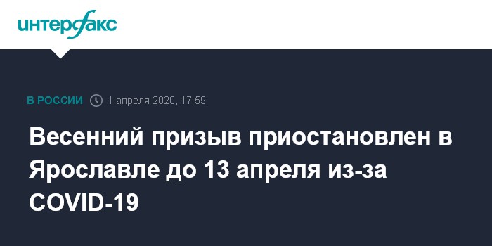 Москва. 1 апреля. INTERFAX.RU - Работа военных комиссариатов в Ярославле приостановлена до 13 апреля, весенний призыв отложен, сообщает пресс-служба мэрии в среду.