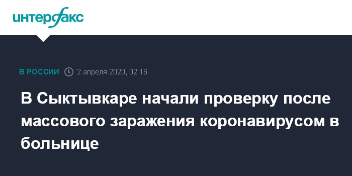 Москва. 2 апреля. INTERFAX.RU - Следователи организовали доследственную проверку после массового заражения коронавирусом в больнице Эжвинского района Сыктывкара.