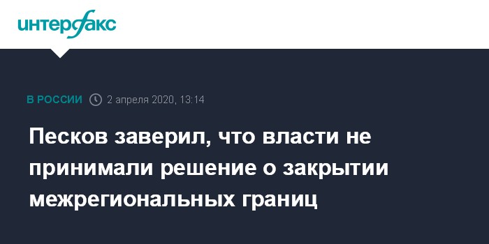 Песков заверил, что власти не принимали решение о закрытии межрегиональных границ