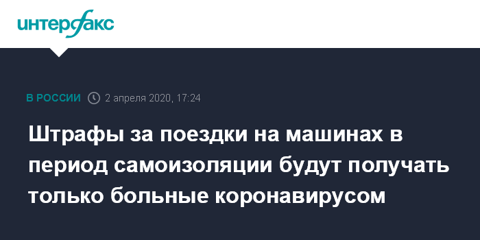 Штрафы за поездки на машинах в период самоизоляции будут получать только больные коронавирусом