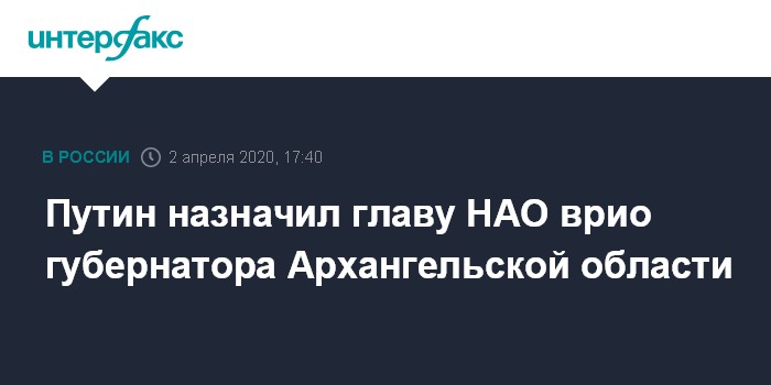Москва. 2 апреля. INTERFAX.RU - Президент Владимир Путин принял отставку губернатора Архангельской области Игоря Орлова, который подал заявление по собственному желанию. Соответствующий указ опубликован на сайте Кремля.