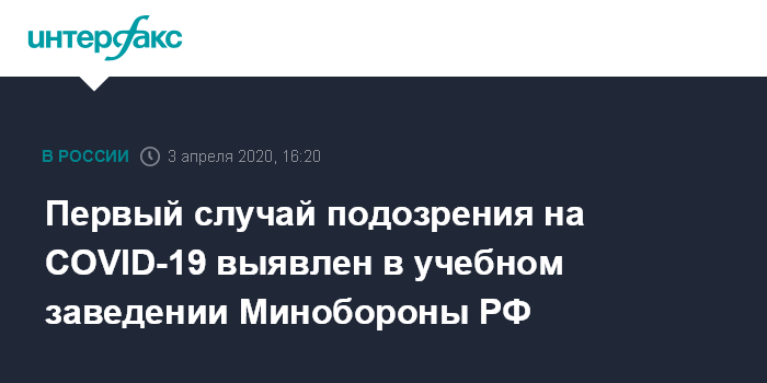 Первый случай подозрения на COVID-19 выявлен в учебном заведении Минобороны РФ