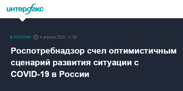 Москва. 4 апреля. INTERFAX.RU - Главный санитарный врач РФ, глава Роспотребнадзора Анна Попова заявила, что Россия в ситуации с распространением коронавируса идет по оптимистичному сценарию.