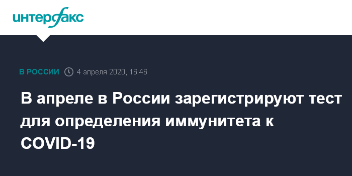 В апреле в России зарегистрируют тест для определения иммунитета к СOVID-19