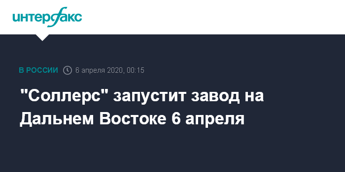 "Соллерс" запустит завод на Дальнем Востоке 6 апреля