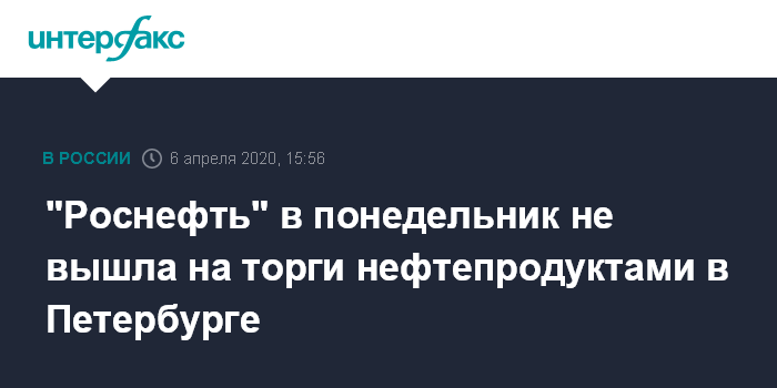 Москва. 6 апреля. INTERFAX.RU - "Роснефть" в понедельник не вышла на торги нефтепродуктами на Санкт-Петербургской международной товарго-сырьевой бирже (СПбМТСБ), сообщили "Интерфаксу" несколько источников на топливном рынке.