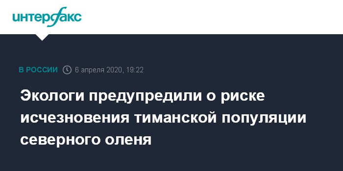 Москва. 6 апреля. INTERFAX.RU - Тиманской популяции дикого северного оленя, которая обитает в западной части Ненецкого автономного округа (НАО), Мезенском районе Архангельской области и Усть-Цилемском районе Республики Коми, угрожают браконьеры. Как предупреждает Баренц-отделение Всемирного фонда дикой природы (WWF), численность этой популяции уже значительно снизилась.