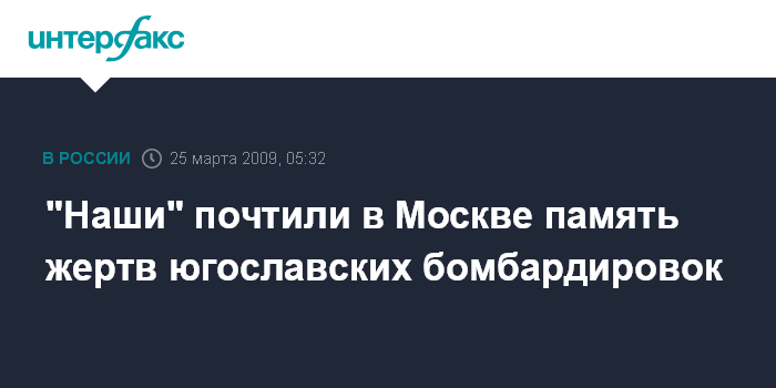 Москва. 25 марта. ИНТЕРФАКС - Активисты "Добровольной народной дружины" ("ДМД" - один из проектов молодежного движения "Наши") почтили в Москве память сербских детей, которые погибли во время бомбардировок Югославии.