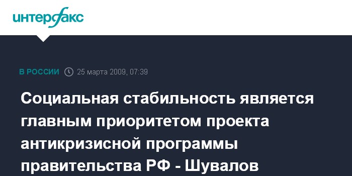 Социальная стабильность является главным приоритетом проекта антикризисной программы правительства РФ - Шувалов