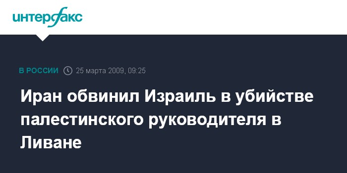 Иран обвинил Израиль в убийстве палестинского руководителя в Ливане