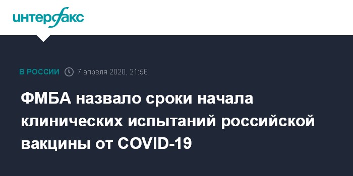 ФМБА назвало сроки начала клинических испытаний российской вакцины от COVID-19
