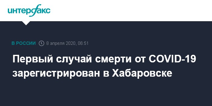 Первый случай смерти от COVID-19 зарегистрирован в Хабаровске