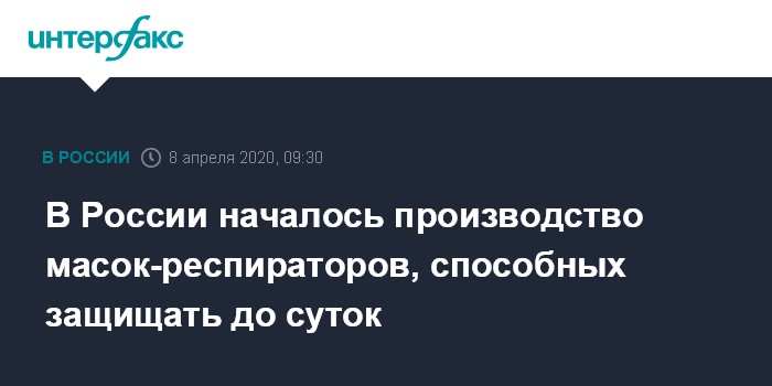 Москва. 8 апреля. INTERFAX.RU - Опытное производство фильтрующих масок, которые способны защищать до суток, развернуто в Саратове, сообщает Фонд перспективных исследований (ФПИ).