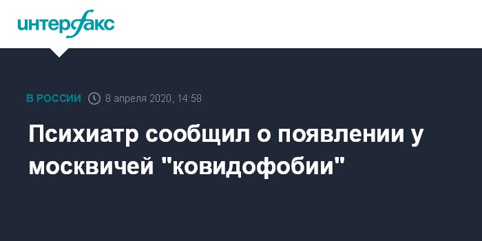 Москва. 8 апреля. INTERFAX.RU - Большинство жителей Москвы, обращающихся в службу психологической помощи, испытывают страх перед распространением коронавируса, сообщила главный врач психиатрической больницы номер 4 имени Ганнушкина Лариса Бурыгина.