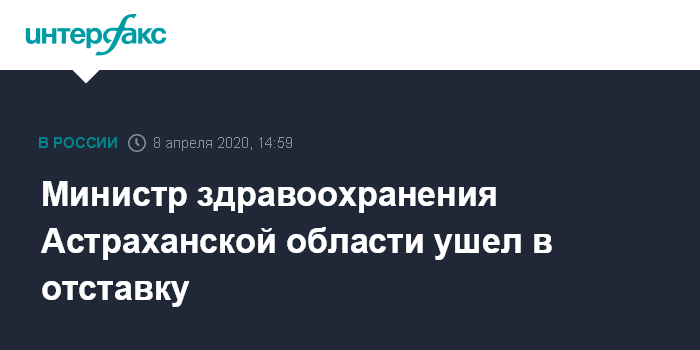 Москва. 8 апреля. INTERFAX.RU - Министр здравоохранения Астраханской области Федор Орлов подал заявление об отставке после заседания совета по оценке качества оказания медпомощи в условиях распространения коронавирусной инфекции, сообщает пресс-служба главы региона в среду.