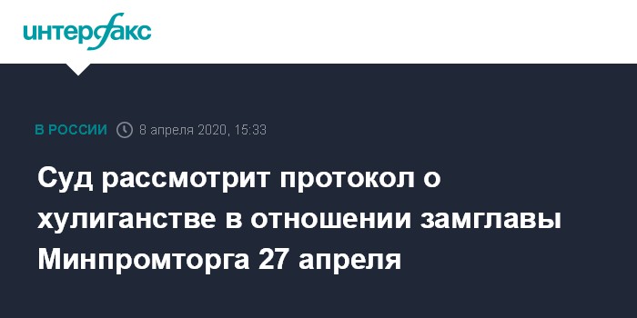Суд рассмотрит протокол о хулиганстве в отношении замглавы Минпромторга 27 апреля