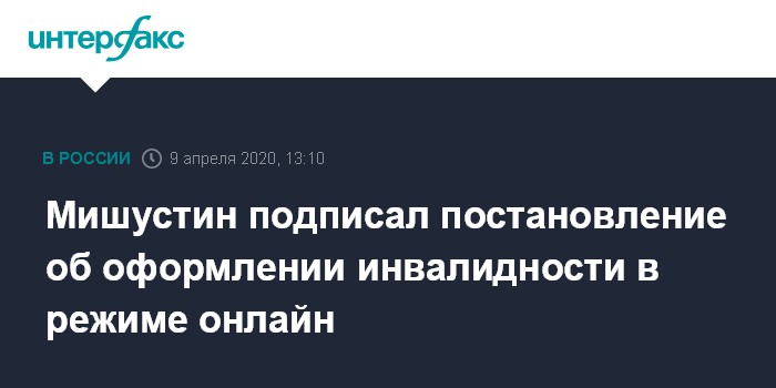 Москва. 9 апреля. INTERFAX.RU - Инвалидность в России отныне будет временно оформляться заочно в режиме онлайн, заявил премьер-министр РФ Михаил Мишустин.