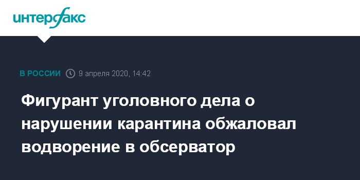 Фигурант уголовного дела о нарушении карантина обжаловал водворение в обсерватор