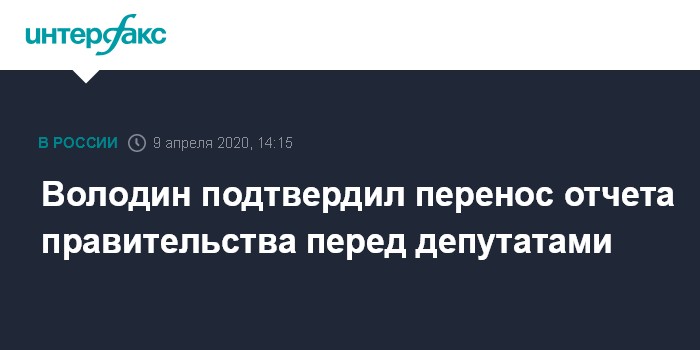 Ранее о переносе ежегодного отчета о работе правительства сообщил источник "Интерфакса" в кабинете министров. По его данным, новая дата выступления Мишустина еще не назначена: ее определят после стабилизации ситуации с коронавирусом.