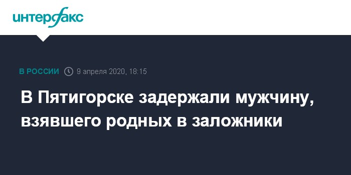 Москва. 9 апреля. INTERFAX.RU - Правоохранительные органы задержали мужчину, который захватил в заложники своих родственников в Пятигорске, сообщил губернатор Ставрополья Владимир Владимиров.