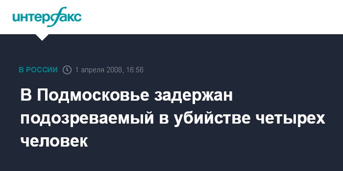 Москва. 1 апреля. INTERFAX.RU - В деревне Островцы Раменского района Подмосковья в понедельник вечером по подозрению в убийстве четырех человек был задержан неработающий, ранее судимый житель области, сообщил "Интерфаксу" во вторник источник в правоохранительных органах.