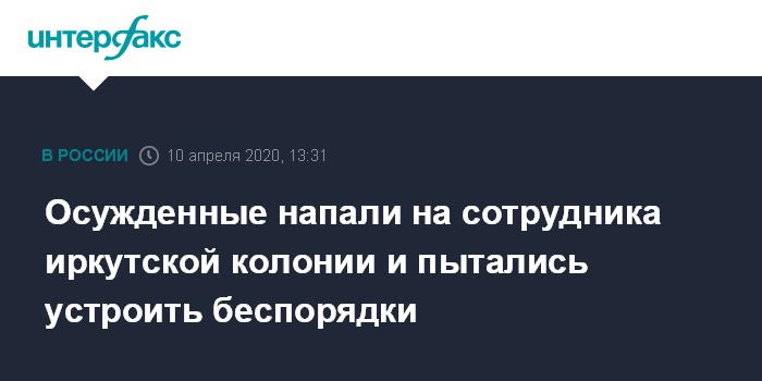 Москва. 10 апреля. INTERFAX.RU - Заключенные в исправительной колонии №15 в городе Ангарске Иркутской области совершили нападение на сотрудника учреждения. Об этом сообщили "Интерфаксу" в пятницу в пресс-службе Главного управления ФСИН по региону.