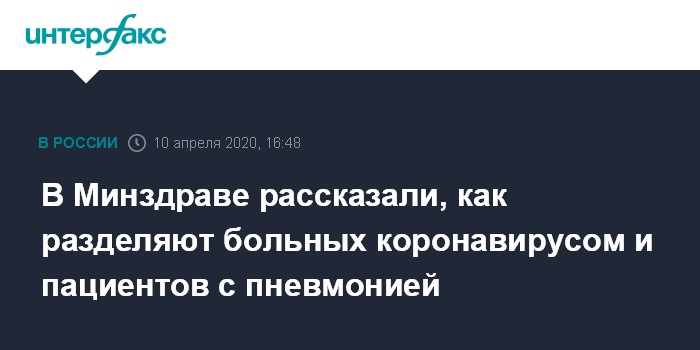 Отвечая на вопрос о том, как разделяют больных коронавирусом и страдающих другими заболеваниями, например, пневмонией, Мурашко пояснил, что они "дифференцируются клинически". "Мы видим и по снимкам легких особенности течения этого заболевания, на амбулаторном этапе тоже есть те клинические проявления, степень значимости того или иного симптома отличается при разных видах заболеваний", - добавил он.