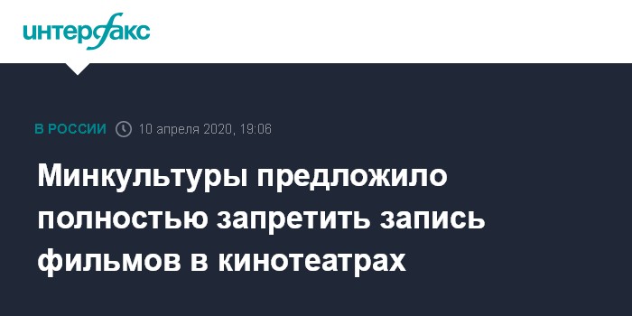 Москва. 10 апреля. INTERFAX.RU - Минкультуры подготовило проект федерального закона о полном запрете вести запись фильмов в кинотеатрах вне зависимости от целей таких записей. Об этом на Петербургском юридическом форуме сообщила глава ведомства Ольга Любимова.
