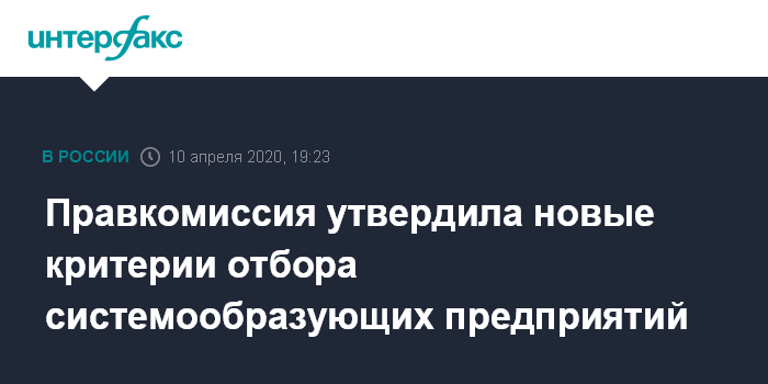 "У нас механизм системообразующих предприятия сформировался еще в 2008 году, он используется для определения перечня предприятий, которые с точки зрения уплаты налогов, с точки зрения занятости, с точки зрения наличия каких-то критических технологий или работы в каких-то важных сферах, территориях для государства, подлежат особому мониторингу со стороны органов власти и по которым в зависимости от результатов этого мониторинга точечные решения. Мы несколько недель назад приняли проект этого перечня по тем критериям, которые раньше работали", - сказал министр о предыдущих критериях отбора.