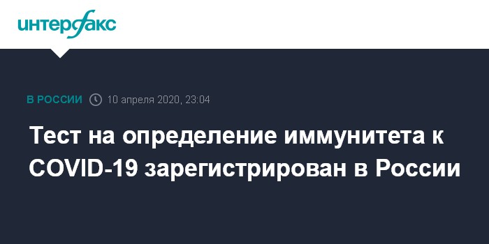 4 апреля сообщалось, что в России на базе ГНЦ "Вектор" создана новая тест-система - она позволит не только найти людей, зараженных коронавирусом, но и тех, кто уже переболел вирусом и имеет устойчивый иммунитет. Регистрация этой тест-системы ожидалась в течение ближайших недель.