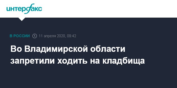 Москва. 11 апреля. INTERFAX.RU - Власти Владимирской области запретили местным жителям посещать кладбища из-за распространения коронавирусной инфекции, сообщает пресс-служба администрации региона.