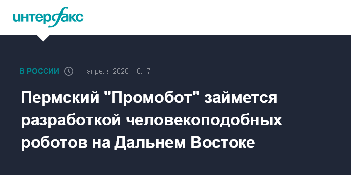 Москва. 11 апреля. INTERFAX.RU - Дальневосточный фонд высоких технологий предоставил ООО "Промобот" (Пермь) 200 млн рублей на разработку человекоподобных роботов, говорится в сообщении фонда.