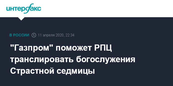 "Газпром" поможет РПЦ транслировать богослужения Страстной седмицы