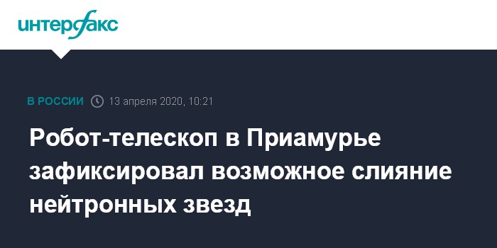Робот-телескоп в Приамурье зафиксировал возможное слияние нейтронных звезд