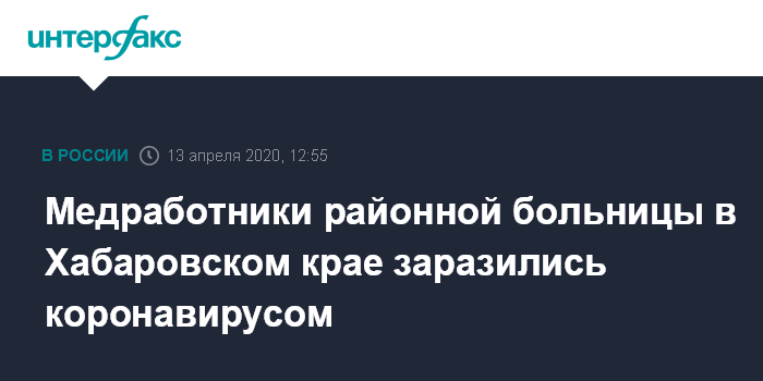 Москва. 13 апреля. INTERFAX.RU - Бригада врачей и сотрудников Роспотребнадзора направлены в село Богородское Ульчского района Хабаровского края, где, по предварительным данным, коронавирусной инфекцией заразились сотрудники местной больницы.