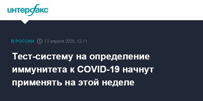Москва. 13 апреля. INTERFAX.RU - Тест-систему на антитела к коронавирусу COVID-19 начнут применять уже на текущей неделе, в первую очередь исследуют медиков, сообщила вице-премьер Татьяна Голикова.