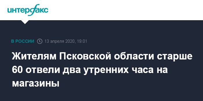 Жителям Псковской области старше 60 отвели два утренних часа на магазины