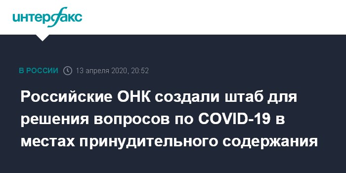 Москва. 13 апреля. INTERFAX.RU - Несколько десятков Общественных наблюдательных комиссий (ОНК) в РФ создали центральный штаб по борьбе с коронавирусом в местах принудительного содержания, сообщил "Интерфаксу" председатель столичного ОНК Георгий Волков.