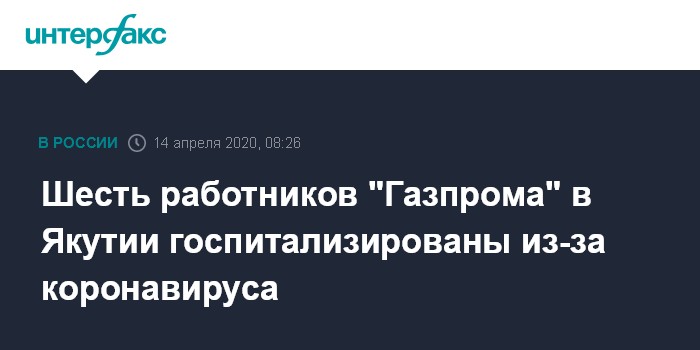 "Сложная ситуация на Чаяндинском месторождении. Шесть работников ООО "Газпром добыча Ноябрьск" находятся в инфекционном отделении Ленской центральной районной больницы. У трех из них сегодня утром подтвержден коронавирус, среди них есть и местные жители (сотрудники компании - ИФ)", - говорится в сообщении.