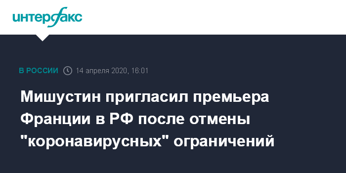 Москва. 14 апреля. INTERFAX.RU - Премьер Михаил Мишустин пригласил французского коллегу Эдуара Филиппа посетить Россию.