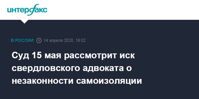 Суд 15 мая рассмотрит иск свердловского адвоката о незаконности самоизоляции