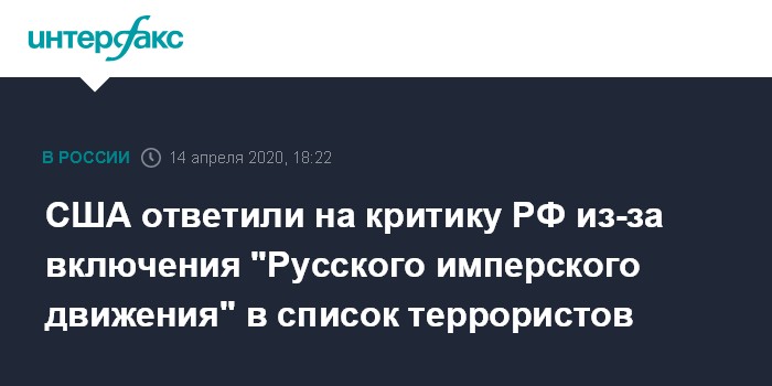 Между тем сайт "Русского имперского движения" (РИД), которое США внесли в список террористических организаций, был включен Минюстом РФ в реестр экстремистских материалов еще восемь лет назад.