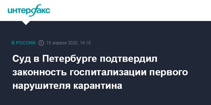 Суд в Петербурге подтвердил законность госпитализации первого нарушителя карантина