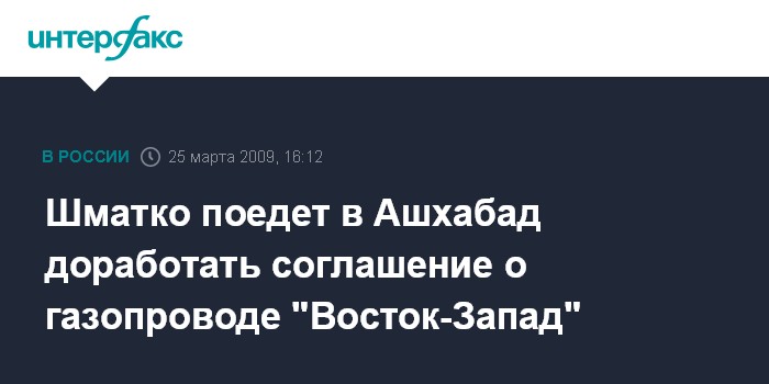 Шматко поедет в Ашхабад доработать соглашение о газопроводе "Восток-Запад"
