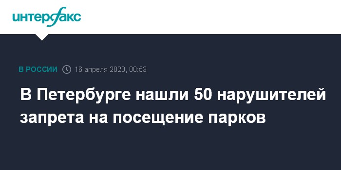 Москва. 15 апреля. INTERFAX.RU - Сотрудники правоохранительных органов Петербурга за минувшие сутки выявили 50 нарушителей постановления Смольного об ограничениях из-за COVID-19, сообщил городской комитет по вопросам законности в среду.