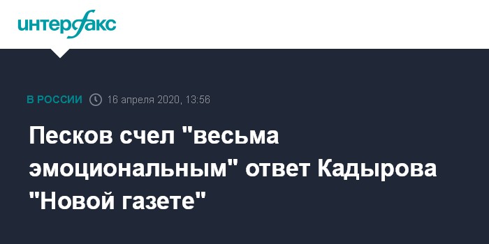На вопрос, требуется ли публичный ответ Кадырову, Песков сказал: "Нет, не считаем необходимым".
