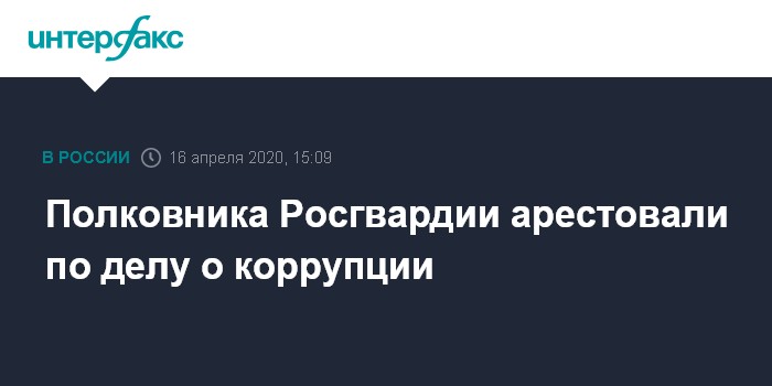 Полковника Росгвардии арестовали по делу о коррупции