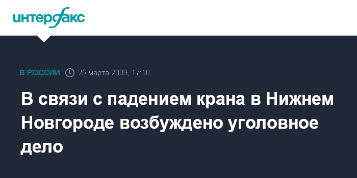 В связи с падением крана в Нижнем Новгороде возбуждено уголовное дело