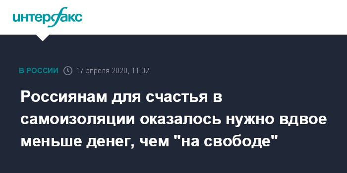 Россиянам для счастья в самоизоляции оказалось нужно вдвое меньше денег, чем "на свободе"