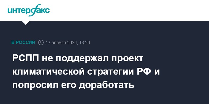 Москва. 16 апреля. INTERFAX.RU - Российский союз промышленников и предпринимателей не поддержал проект Климатической стратегии РФ до 2050 года, подготовленный Минэкономразвития, посчитав, что он требует существенной доработки.
